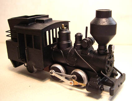 | ●ナローゲージの機関車を2倍に拡大した[全木製]ボールドウィンです。c11より小さいのでボイラーはソリッドの丸棒、 エントツ、蒸気ドーム、砂箱、タービン発電機と車輪は丸棒の削り出しです。この機関車も1m落下テストをクリアーするためそれぞれのパーツの接合は接着剤だけでなく竹や金属の芯を入れて補強し、運転室の窓ワクも裏から添え木をあててあります。ピストンロッドなど足回りはアルミとシンチューで簡素化しています。 |
