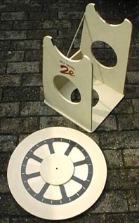 | ●ドブソニアン式架台。全部ベニア製で水平回転部にはローラーベアリングを使っています。望遠鏡はこの上に乗せるだけです。 | |||||||||