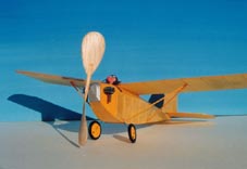 | ●翼長30cm〜50cm位のゴム動力スケール機です。「ピーナッツクラス」とか「ピスタチオクラス」とか呼ばれ、海外でも国内でも多くのファンがいて競技会なども行われているようです。 機体はバルサと紙で作りますが、スケール感と飛行性能を両立させるのはなかなか難しいです。 |