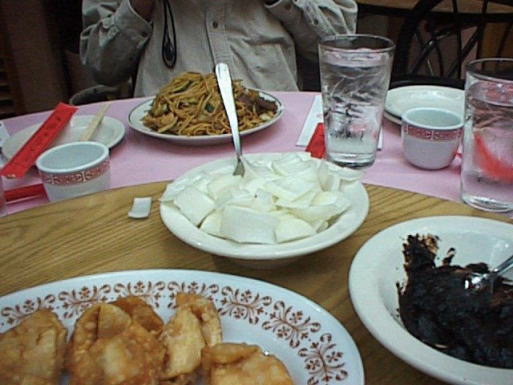 更にである。どう見ても、”玉ねぎのぶつ切り”みたいなのが出された。これは何だろう? サラダ? さっそく、ていとく達は聞いてみる。すると、『あんたそりゃ、日本のたくあんだろう。』 たくあん? たくあんって、玉ねぎをぶつ切りにして生で食べるもの? 彼が言いたかったのは、”日本でいうたくあんと同じ”ということか? それにしても全然違うぞ。せめてオニオンスライスにしてもらえれば食えるような気がするが・・・。で、これをどうやって食べるのあんたたちは? すると店員は酢を示した。そう、酢で食べるのね。ていとくは一応トライしてみたが・・・。玉ねぎの味と酢の味がした。