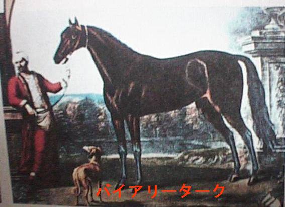 いませんでした。他のヨーロッパの国々が多かれ少なかれタタール系かイスラム系の騎馬民族の影響を受け、騎兵と馬を育てるのにやっきになっていた時代にも、イギリスは島国という環境もあり、そんなに切羽詰った状況ではなかったのです。18世紀初頭に、サラブレッド3大始祖の1頭、ダーレアラビアンが輸入されます。こうしたアラブ系の馬は当時のイギリスにはほとんどいないため貴重品として大切にされ、それらの子孫がイギリスとしてはすばらしい競走馬になっていきました。当時のイギリスには馬産という伝統がなく、アラブ馬は、イギリスの大きな馬の牝系やタークとの混血などと交配されていきました。こうした雑種的な交配は、イギリスでのみ行われました。1746年、ダーレアラビアンの直系として生まれたエクリップスはとてつもなく強い馬で、他の馬とはまったく競走にならなかったといわれています。それも当然で当時のイギリスは何度も言うように他のヨーロッパの国々に比べ、馬産の後進国です。ここで世界レベルの馬が出れば他の馬では相手にならないのは当たり前のことでした。これと同じ事がバイアリータークにも言えます。しかし、1790年ごろにサラブレッド