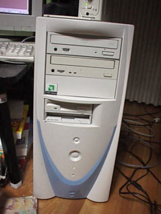 自分でいうのもなんだが、まあまあなコンピュータが出来上がって満足している。作ってみて感じたが、自作マシンというのはどうしても安定稼動させるために1週間くらいかかる。これは提督の場合だけど。しかし、一度作ってしまえば、必要な部品を変えたり付け加える自由度は、メーカー製マシンの比ではない。また、Athlonを使用した高性能マシンを手に入れようとした場合、現在ではメーカー製の機種は無い。パソコンの自作が可能で高性能マシンがほしい方にはAthlonはお勧めである。ただ、自作をする場合、各種パーツのマニュアルの半分以上は英語版しかないことは覚悟しよう。特にマザーボードの設定にはマニュアルが不可欠で、マニュアルが読める程度の英語力はどうしても必要になる。マニュアルで思い出したのだが、今回使用したK7Mというマザーボードは、CPUコア電圧を変更できるようになっている。一般にCPUをオーバークロックで稼動させたとき、CPUコアに供給する電圧を上げたほうが安定して稼動する。明らかにこれはオーバークロックの為の仕様だ。マニュアルにはこのスイッチについて次のように記述されている。[It is strongly recommended that you leave this setting on its default.] ようは『変えないでね』と言っている訳だ。この頃このマザーボードは雑誌等で正式に紹介され始め、ASUSTeK自身のコマーシャルも見かけるようになった。そこにはこの様にかかれていた。『FSB CLOCKおよびCPUコア電圧を自由に変換可能。本格的なオーバークロックを可能にした世界標準のマザーボード登場』 うーん、マニュアルとコマーシャルが矛盾している。